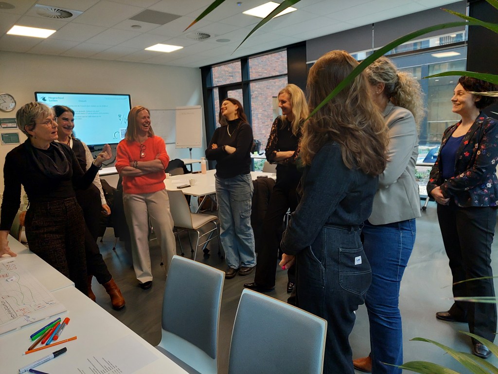 Ook werden diverse tips, inspiratie en leerpunten met elkaar gedeeld. Zo werd er uitgebreid gesproken over de uitkomsten van de bijeenkomsten van het landelijk leernetwerk Leren Transformeren van zorg naar gezondheid, gefaciliteerd door ZonMw. En bespraken we ontwikkelingen uit de proeftuinen. Zo waren er leuke gesprekken over mantelzorg met een HR adviseur van de gemeente Katwijk, was er een inspirerende bijeenkomst met sleutelfiguren in de Merenwijk en deelde HLT hun vorderingen met Zorgzame buurt. Leuk en goed om elkaar te inspireren en van elkaar te leren!